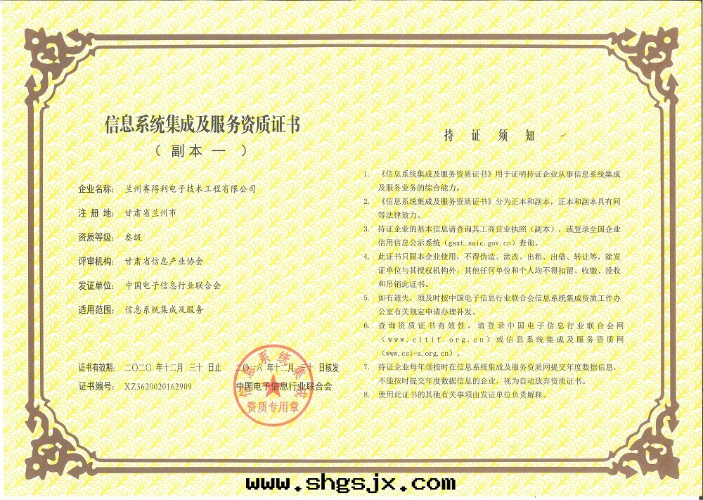 信(xìn)息系(xì)統集成(chéng)及(jí)服(fú)務(wù)叁級資质