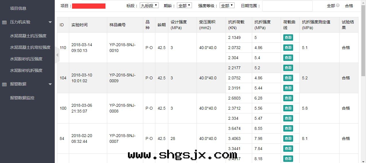 系(xì)統針(zhēn)对(duì)試验(yàn)儀器設備進(jìn)行數字(zì)化(huà)改造、升(shēng)級,利用(yòng)网(wǎng)絡通(tòng)訊等信(xìn)息化(huà)技術(shù),完成(chéng)試验(yàn)过(guò)程中(zhōng)試验(yàn)數據(jù)的(de)第三方后台(tái)采集,並(bìng)上(shàng)傳監控平台(tái),從源头(tóu)保證試验(yàn)數據(jù)的(de)真(zhēn)實(shí)性;同(tóng)时(shí)根(gēn)據(jù)試验(yàn)檢測标(biāo)準進(jìn)行數據(jù)分(fēn)析,實(shí)現(xiàn)不(bù)合格數據(jù)的(de)短(duǎn)信(xìn)報警。