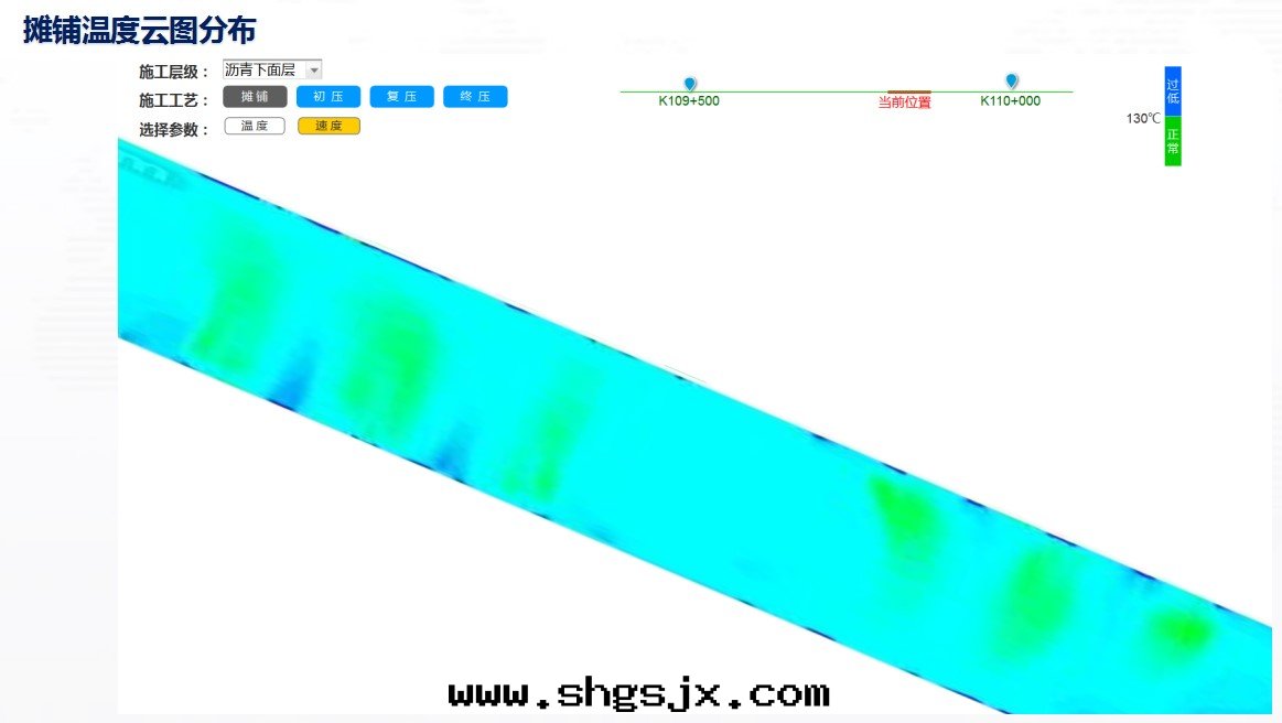 針(zhēn)对(duì)攤鋪機(jī)進(jìn)行數字(zì)化(huà)改造,在(zài)不(bù)破壞機(jī)器的(de)前(qián)提(tí)下(xià)加裝(zhuāng)GNSS厘(lí)米級定(dìng)位(wèi)系(xì)統、温(wēn)度(dù)傳感(gǎn)器、平闆電(diàn)腦、視頻監控系(xì)統等組件(jiàn),實(shí)施監測攤鋪温(wēn)度(dù)、速度(dù)等质量(liàng)數據(jù),攤鋪碾壓后台(tái)界面(miàn)記(jì)录(lù)和存儲施工过(guò)程所(suǒ)有(yǒu)的(de)數據(jù),提(tí)供攤鋪温(wēn)度(dù)雲(yún)图(tú)、位(wèi)置、速度(dù)波(bō)動(dòng)等數據(jù),並(bìng)为(wèi)质量(liàng)回(huí)溯提(tí)供數據(jù)支撐。
